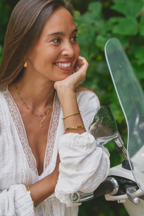 All of our jewellery is made from strong stainless steel and coated with 18K real gold using a PVD (Physical Vapor Deposition) process, making it 100% waterproof and highly durable.